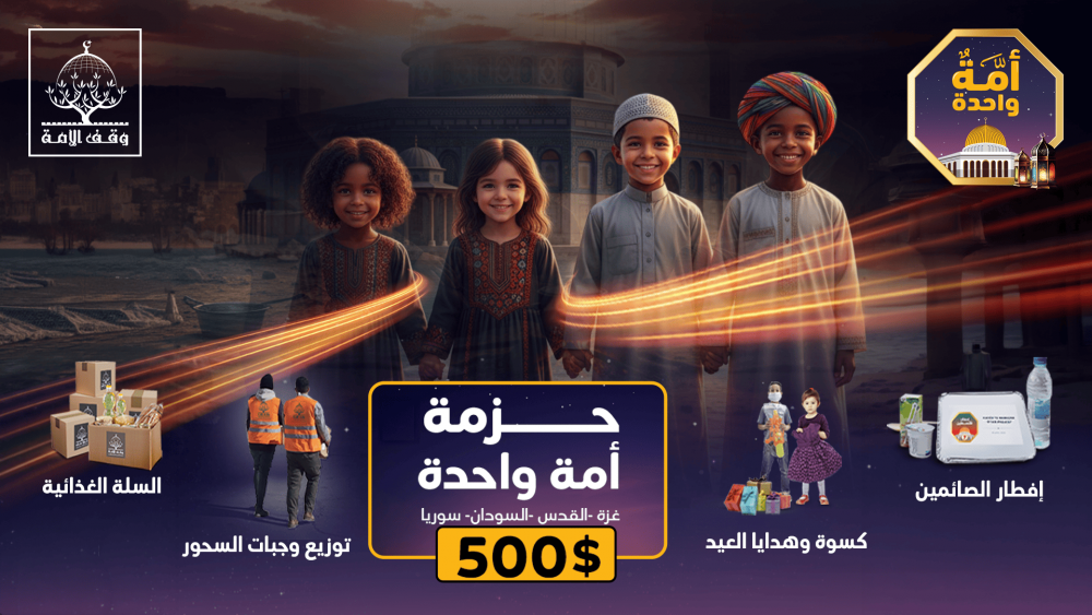 عبر حزمة أمة واحدة تتمكن من تغطية احتياجات أهلنا في غزة - القدس-سوريا والسودان