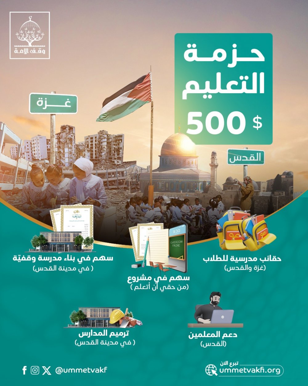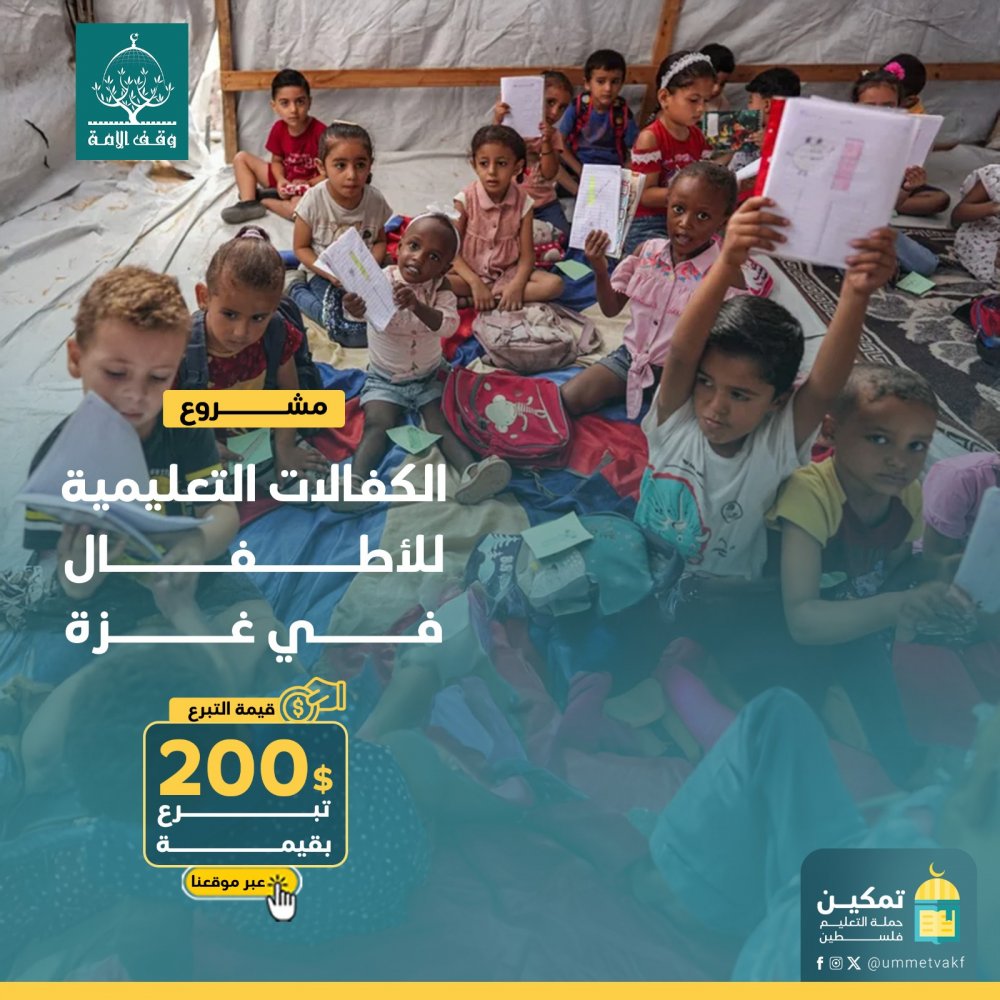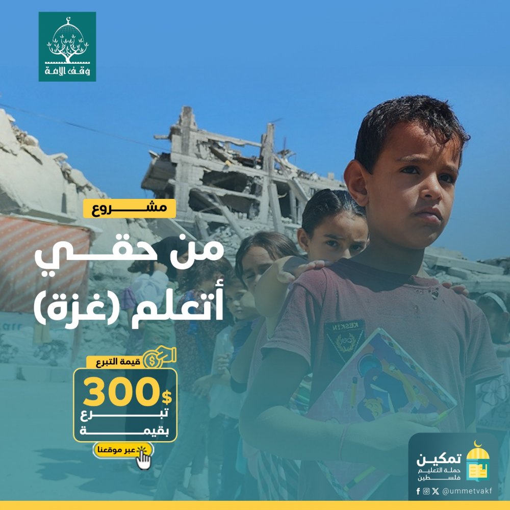نسعى في وقف الأمّة ومن خلال حملة التعليم في فلسطين، لتمكين هؤلاء الأطفال من الوصول إلى حقهم الأساسي في التعليم وبناء مستقبلهم