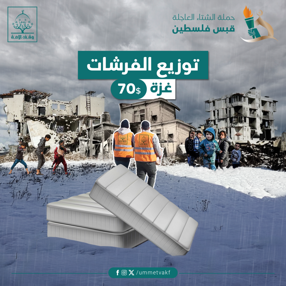 مشروع توزيع كسوة الشتاء لأهلنا في غزة مساندة ودعما لهم في مواجهة البرد ومساندة للأسر النازحة من منازلها، حيث يقيهم البرد والبلل في الأمطار، لا سيّما مع فقدانهم بيوتهم الدافئة فيشتدّ عليهم البرد، دعم هذا المشروع إعانة للعائلات الغزية على الصمود ودعما لتضحياتهم وما يقدمونه فداء للأقصى والمقدسات