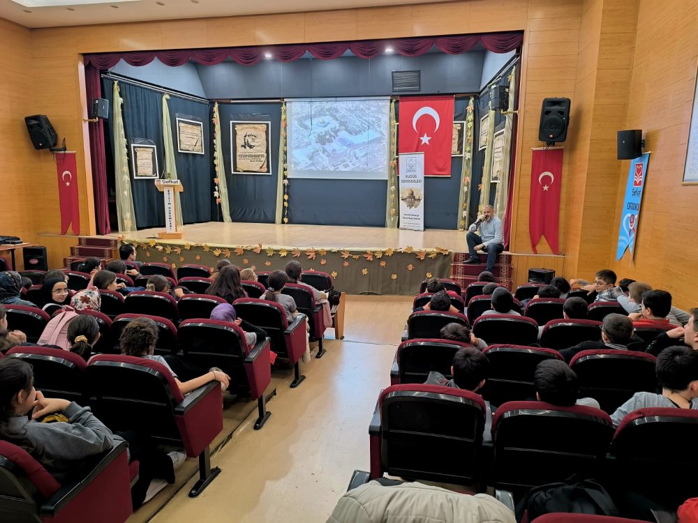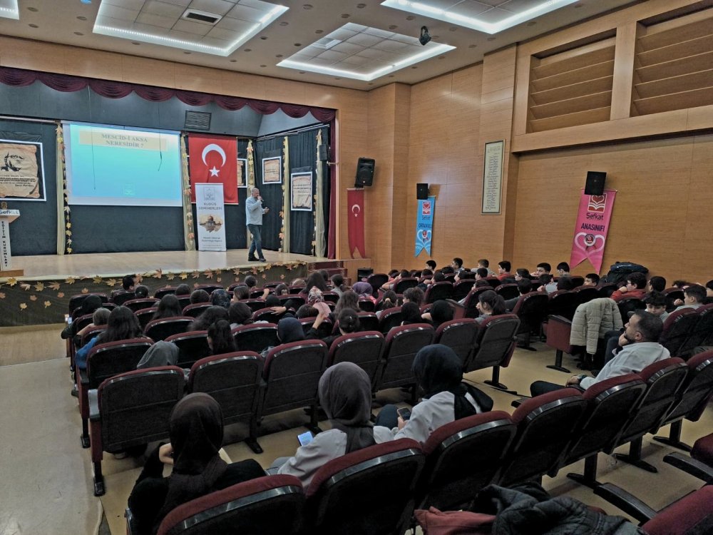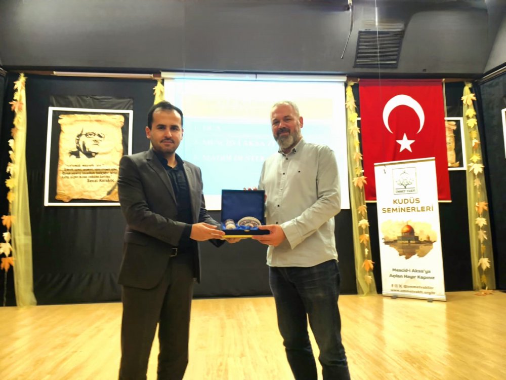 İnteraktif sunum ve sinevizyon gösterimiyle desteklenen programda, Ümmet Vakfı Başkan Yardımcısı Tevfik Yazıcılar “Kudüs Bizim İçin Neden Önemli?” başlıklı konuşmasını yaptı.