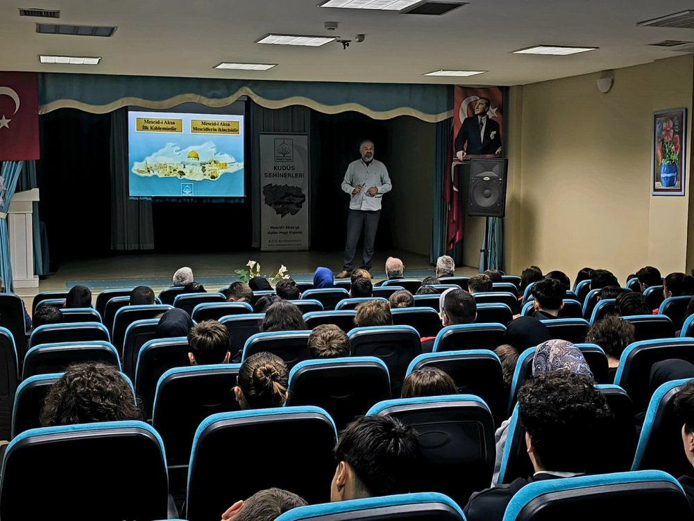 Ümmet Vakfı Başkan Yardımcısı Tevfik Yazıcılar, öğrencilerle buluşarak “Kudüs Bizim İçin Neden Önemli?” başlıklı sunumunu gerçekleştirdi. Programda Filistin, Gazze ve Mescid-i Aksa’da yaşanan gelişmeler ele alınırken; Kudüs’ün Müslümanlar açısından taşıdığı tarihsel ve manevi önem sade ve öğrencilere yönelik bir dille anlatıldı.